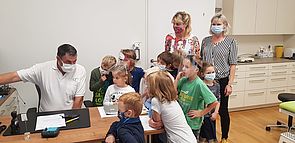 Herr Dr. Gepp und seine Frau Elisabeth führten die Kinder fachkundig durch die Ordination. Mit dem Stethoskop den eigenen Herzschlag zu hören, war faszinierend.