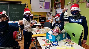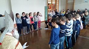 Die SchülerInnen der 1.Klasse überraschten ihre SchulpatInnen der 4. Klasse mit Liedern und Gedichten , sowie mit selbstgebastelten Geschenken.