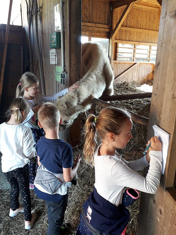 Die 3. Klasse besuchte die Tiere der Mostschenke am Welttierschutztag.