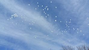 Die VS Ratschendorf setzt ein Zeichen für den Frieden und lässt im Rahmen einer Osterfeier weiße Luftballone in den Himmel steigen.