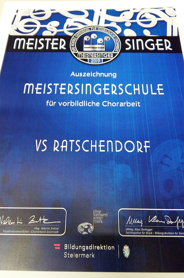 Auch im heurigen Schuljahr wurde unsere Schule für die gute Chorarbeit ausgezeichnet.
