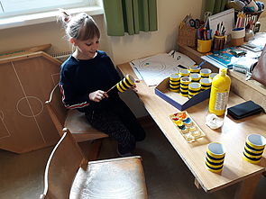 Die Kinder des Kindergarten Deutsch Goritz lernten ihre Schulpaten kennen und gestalteten gemeinsam eine Feriendose.