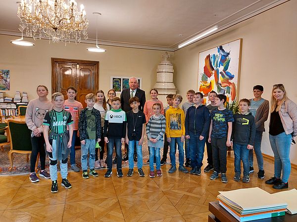 Landeshauptmann Schützenhöfer empfängt Schüler der VS Ratschendorf.