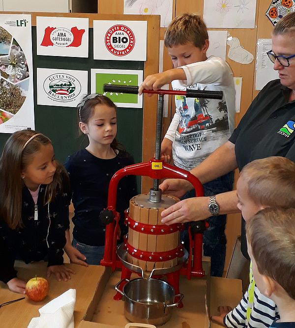 Frau Gangl von Fruchtsaft Gangl besucht die 2. Klassen und stellt im Rahmen eines Projekttages den Apfel vor!